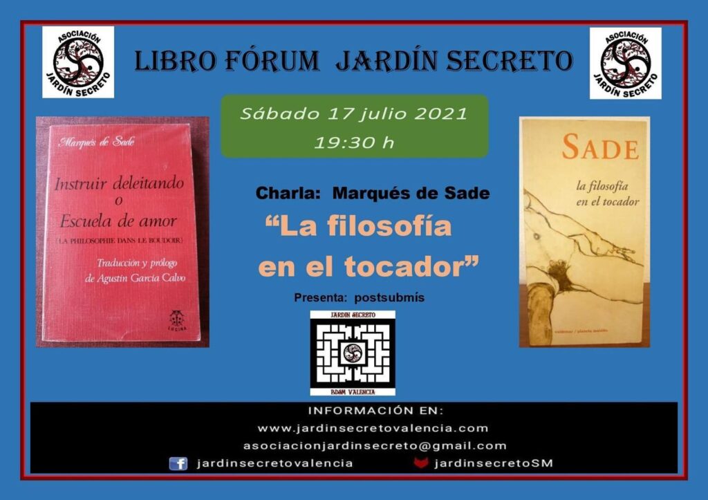Seguir leyendo Libro forum «Filosofía en el Tocador» en Jardín Secreto – Valencia, 17 jul.’21